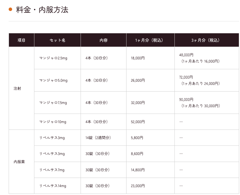 ▶取り扱いマンジャロ容量・料金